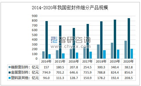 密封件市場(chǎng)主要分為橡膠密封件、金屬密封件、塑料密封件等,2020年我國(guó)橡膠密封件市場(chǎng)規(guī)模為382.8億元,占同期規(guī)??偭康?6.43%;金屬密封件市場(chǎng)規(guī)模為856.9億元,占同期規(guī)??偭康?9.17%;塑料及其他密封件市場(chǎng)規(guī)模為208.5億元,占同期規(guī)??偭康?4.40%。