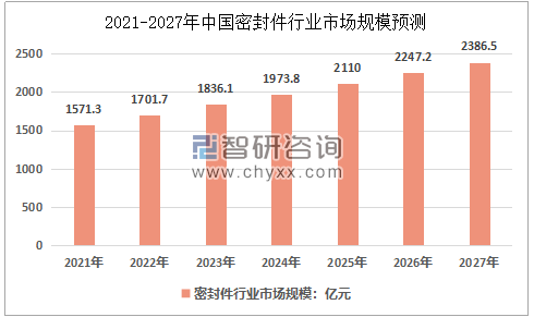 隨著下游應(yīng)用領(lǐng)域的持續(xù)穩(wěn)定增長(zhǎng),密封件工業(yè)主要產(chǎn)品需求將呈現(xiàn)市場(chǎng)規(guī)模持續(xù)增長(zhǎng)、發(fā)展速度漸趨平緩的態(tài)勢(shì)。預(yù)計(jì)到2027年我國(guó)密封件市場(chǎng)規(guī)模達(dá)2386.5億元。
