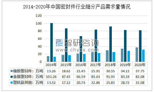 從細(xì)分需求來(lái)看,2020年我國(guó)橡膠密封件需求量37.75萬(wàn)噸;金屬密封件需求量82.08萬(wàn)噸;塑料及其他密封件需求量32.08萬(wàn)噸。